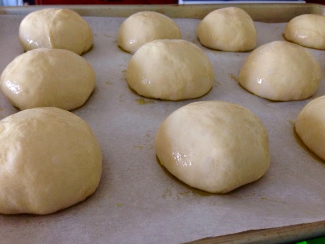 Brush with olive oil and allow to raise for 1 hour or until double in size.
